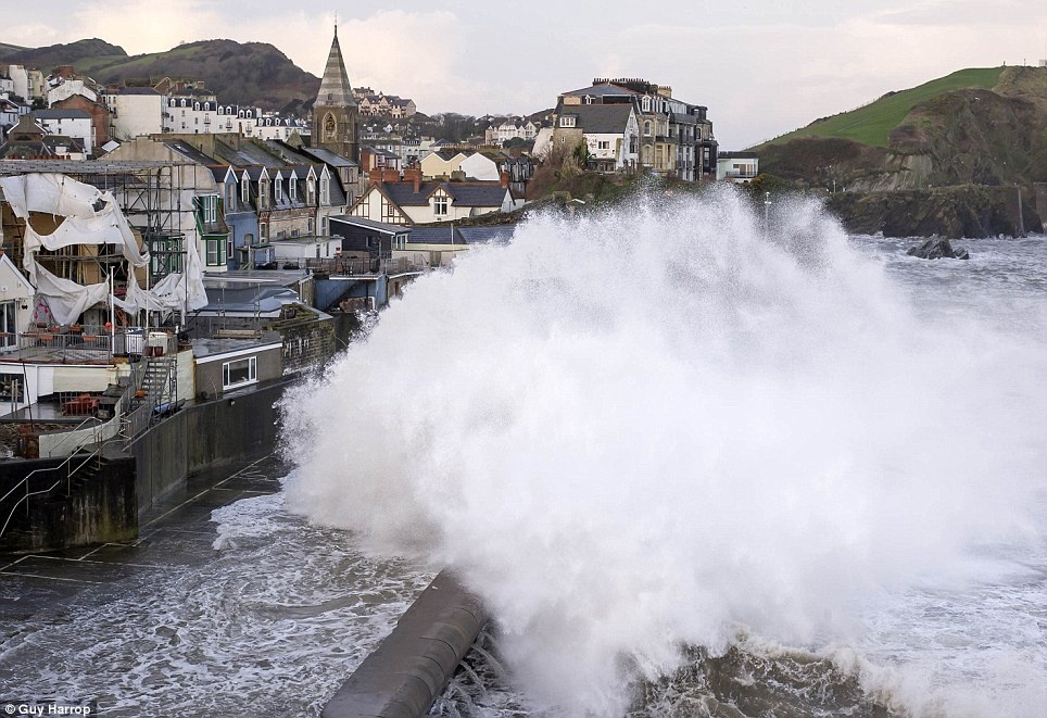 | Sóng lớn xô vào cảng Ilfracombe, hạt Devon hôm 2/2. Ảnh: Guy Harrop |