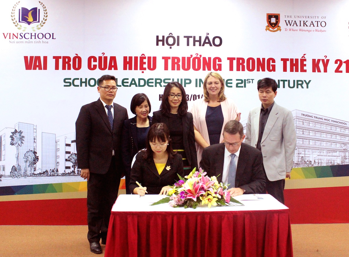 Cũng trong khuôn khổ hội thảo, Đại học Waikato và Hệ thống giáo dục Vinschool đã cùng nhau ký kết biên bản ghi nhớ thống nhất hướng hợp tác cụ thể trong việc xây dựng khung năng lực sư phạm, sát hạch kỹ năng, tổ chức đào tạo và trao đổi giáo viên, đồng thời thiết kế nội dung đào tạo, các chương trình học bổng để chuẩn bị cơ hội cho các học sinh trung học Việt Nam du học tại những trường hàng đầu của New Zealand.