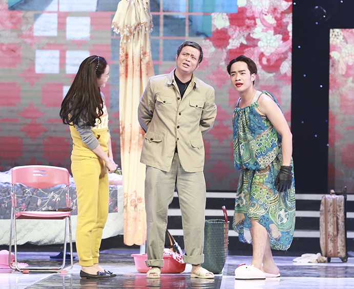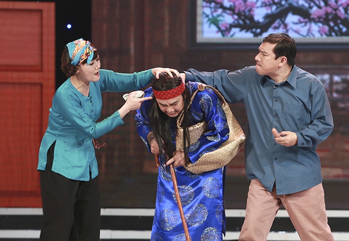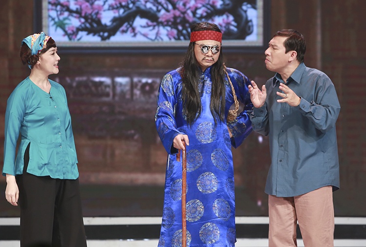 | Trong chương trình năm nay, các diễn viên hài đình đám đất Bắc: Vân Dung - Quang Thắng - Tự Long cùng nhau tham gia tiểu phẩm Đặt tên cho con. Vân Dung vào vai vợ của Quang Thắng, còn Tự Long đóng vai thầy lang. |