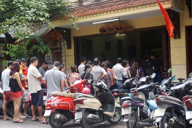 | Phở xếp hàng ở Bát Đàn rất nổi tiếng. |