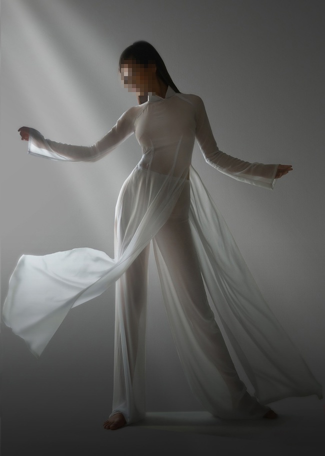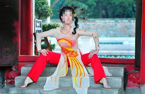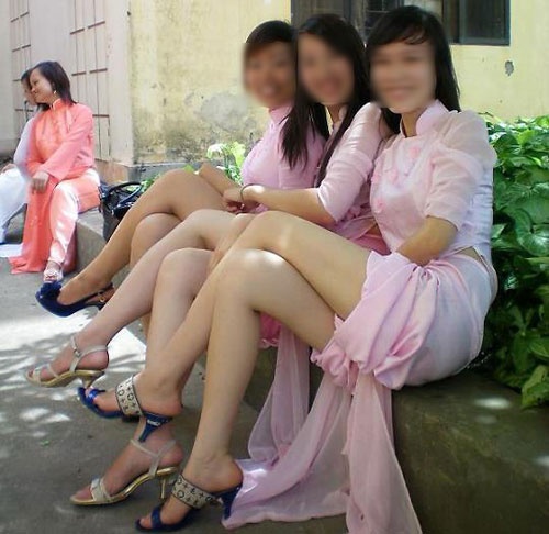 | Lợi dụng áo dài để khoe triệt để ba vòng. |