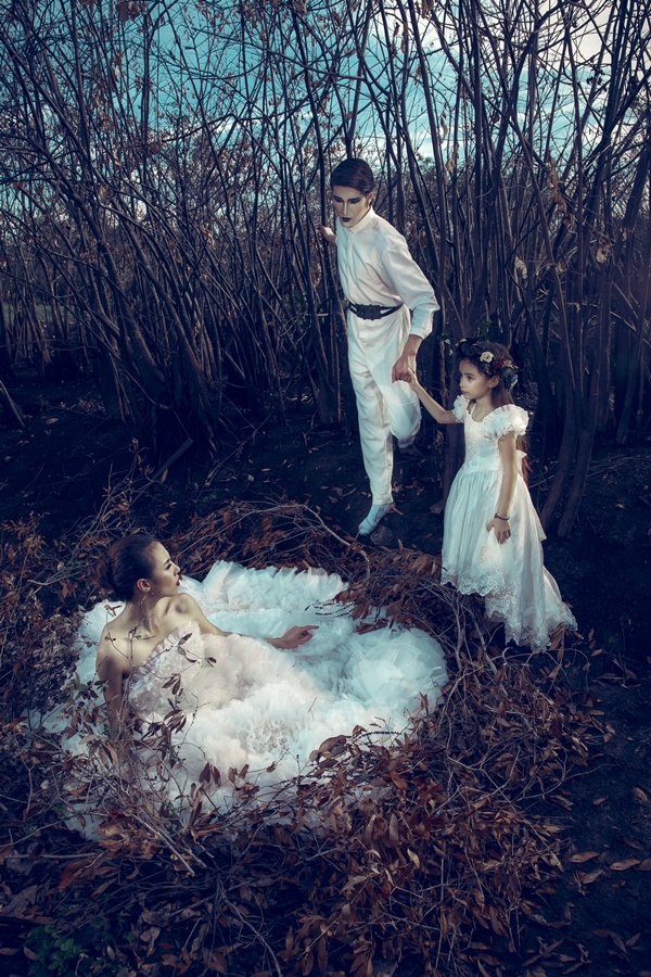 | Với concept khá ma mị và huyền bí, bộ ảnh được thực hiện ở trong một khu rừng già hoang sơ. Theo đó, Lệ Quyên hóa thân là một cô gái đem lòng yêu một con ác quỷ và cũng chính tình yêu mù quáng đó cô đã tự hủy hoại chính mình. |