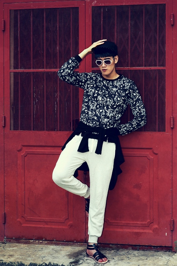 | Nam người mẫu kết hợp chiếc quần jogger và chiếc áo sweater khéo léo kết hợp với những chiếc áo khoác họa tiết trẻ trung. |