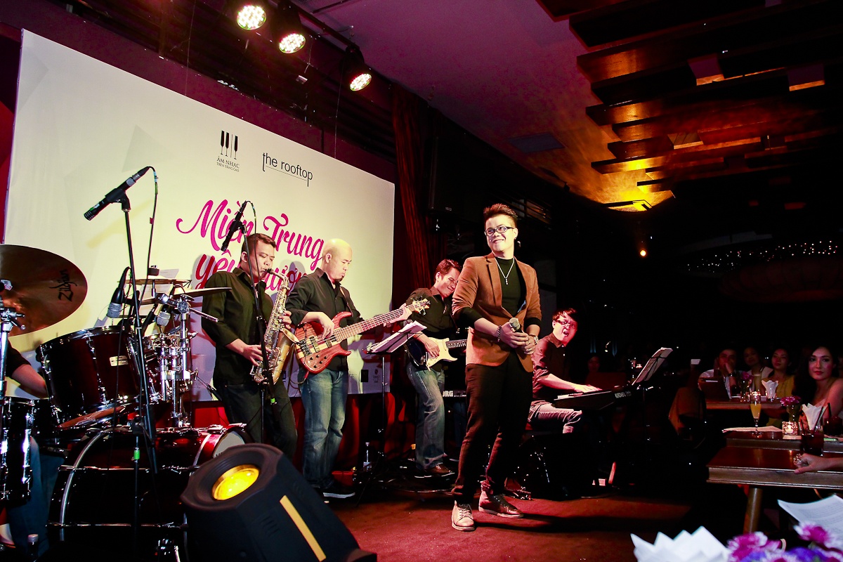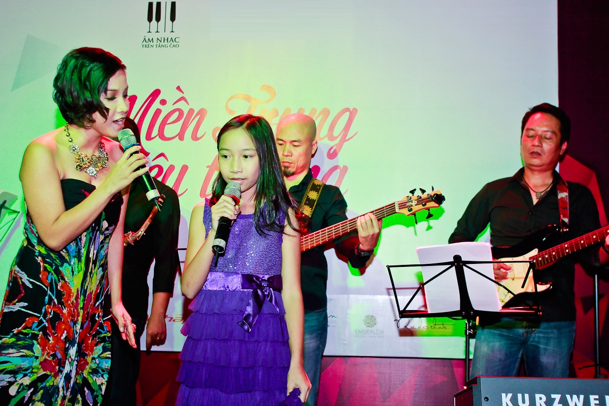 | Điểm nhấn đặc biệt trong phần trình diễn ca nhạc, là sự xuất hiện của bé Mỹ Anh (con gái út của cặp vợ chồng nổi tiếng Anh Quân – Mỹ Linh). |