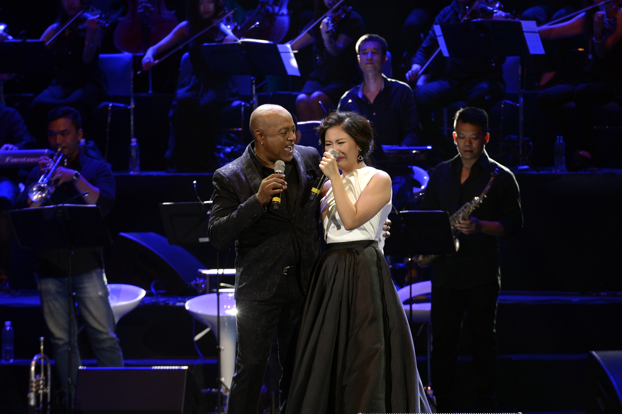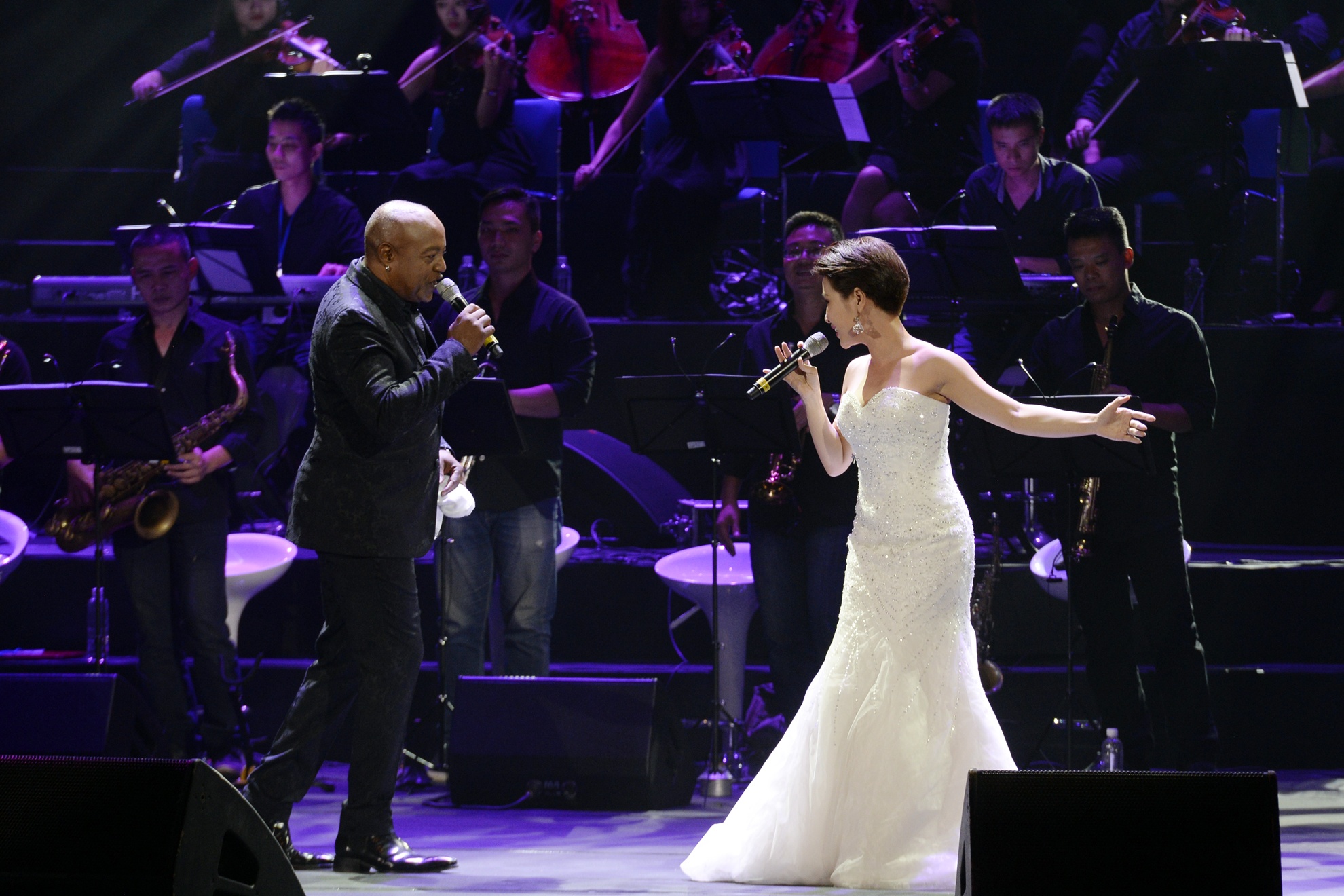 | Peabo Bryson bước ra sân khấu với nụ cười tươi thân thiện và mở màn phần trình diễn của mình bằng một ca khúc giàu giai điệu. |