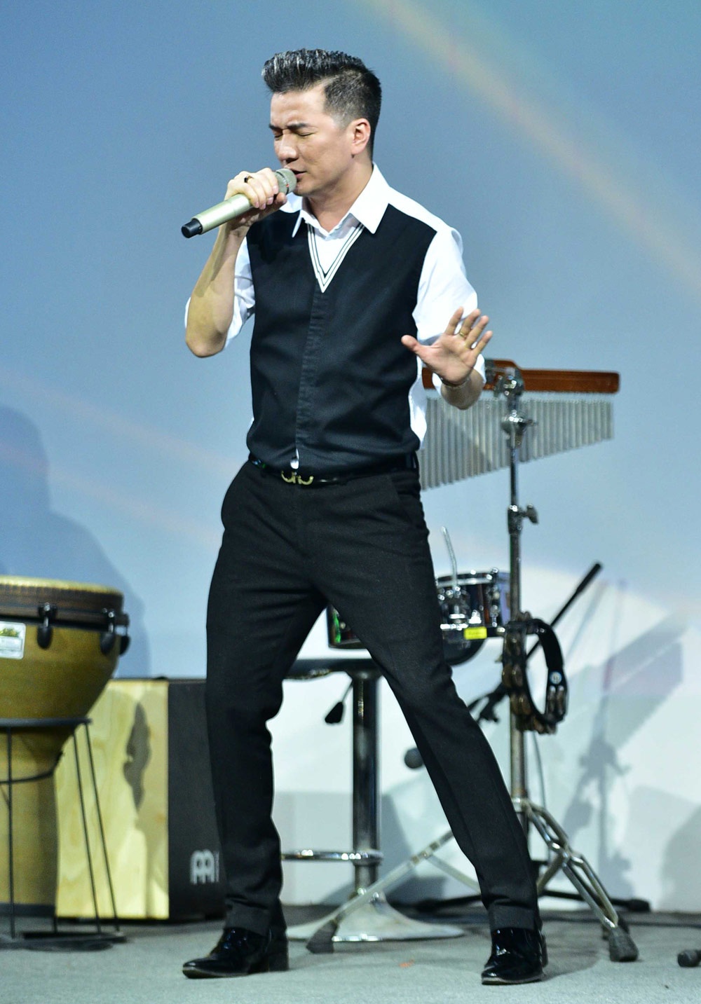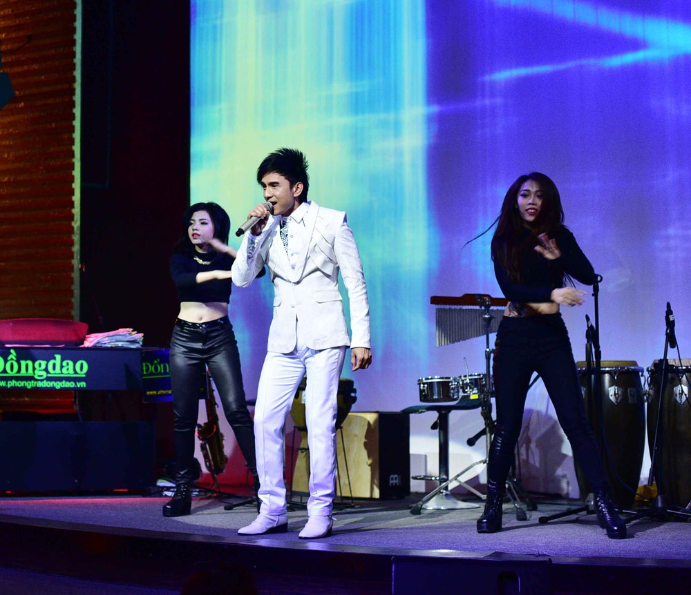 | Anh Bo Đan Trường vừa hát vừa ủng hộ thêm 5 triệu đồng. |