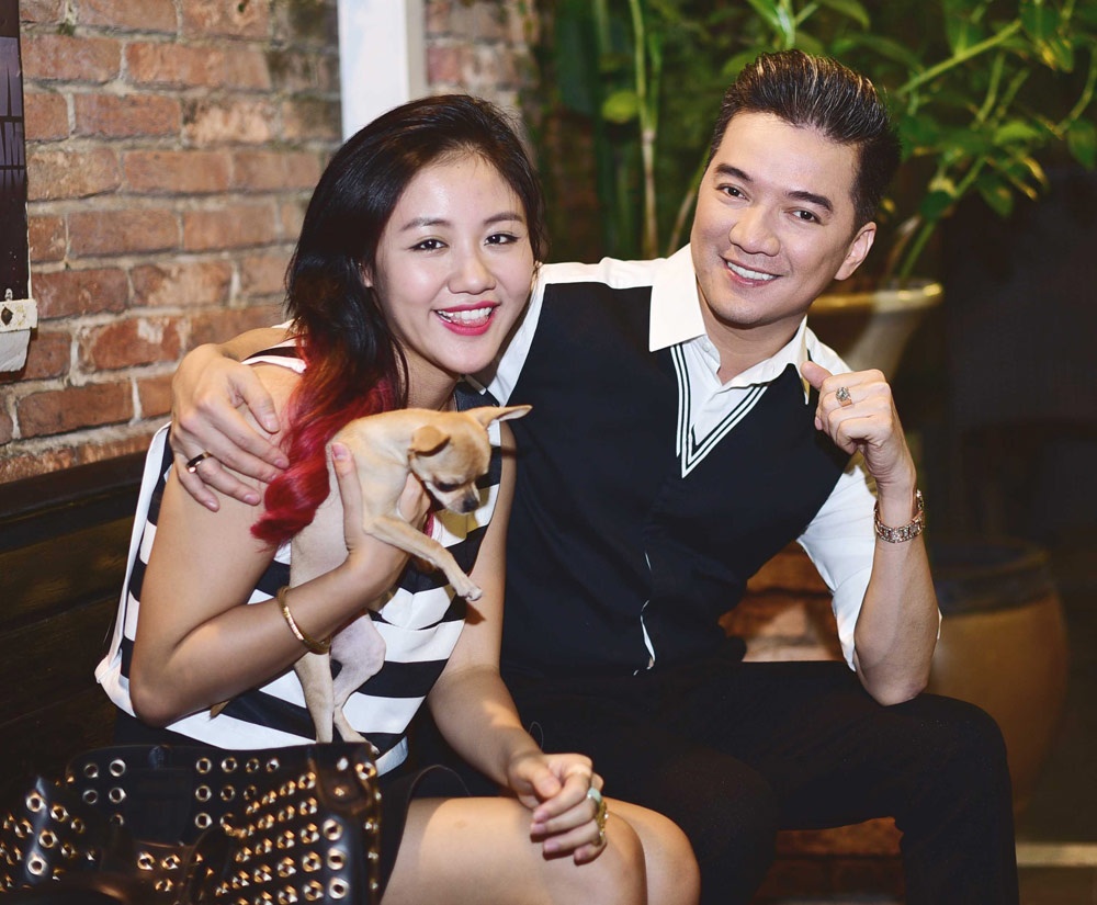 | Văn Mai Hương thích thú khi gặp Đàm Vĩnh Hưng tại đêm nhạc. Hai ca sĩ ngồi bên ngoài trò chuyện, chụp hình khá lâu trước khi chương trình bắt đầu. Giọng ca Nếu như anh đến còn mang cún cưng mà cô được tặng trong sinh nhật đi diễn. |
