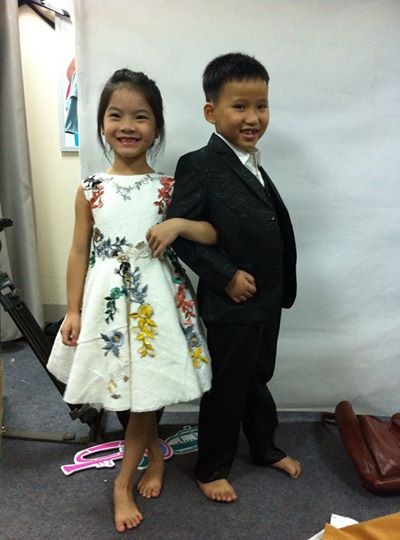 | Thu An điệu đà với váy công chúa, vô tư tạo dáng bên các bạn trong phòng thử đồ. Trước đó, cô bé nhận được nhiều lời khen từ các thầy cô giáo. Là giảng viên hướng dẫn hai bạn nhỏ các ca khúc Việt Nam trong đêm chung kết, chị Kiều Vân nhận xét: “Thu An là cô bé rất thông minh, con có quãng giọng rộng, khả năng định âm tốt, giọng ca khỏe, vang, sáng”. |
