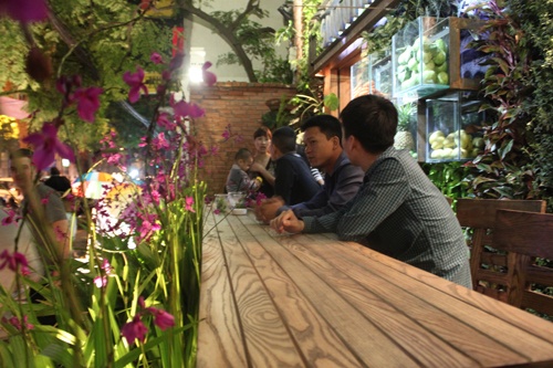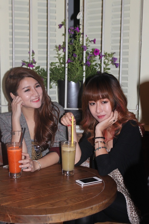 | Không có người bạn khác giới nào đi cùng nhưng Vân Navy vẫn vui vẻ đến Smoothies & Juices trong buổi tối ngày Phụ nữ việt Nam 20/10. Cô mặc chiếc áo vest và đi boot khá ấm áp nhưng để chân trần không tất trong thời tiết khá lạnh vào buổi đêm của Hà Nội. |