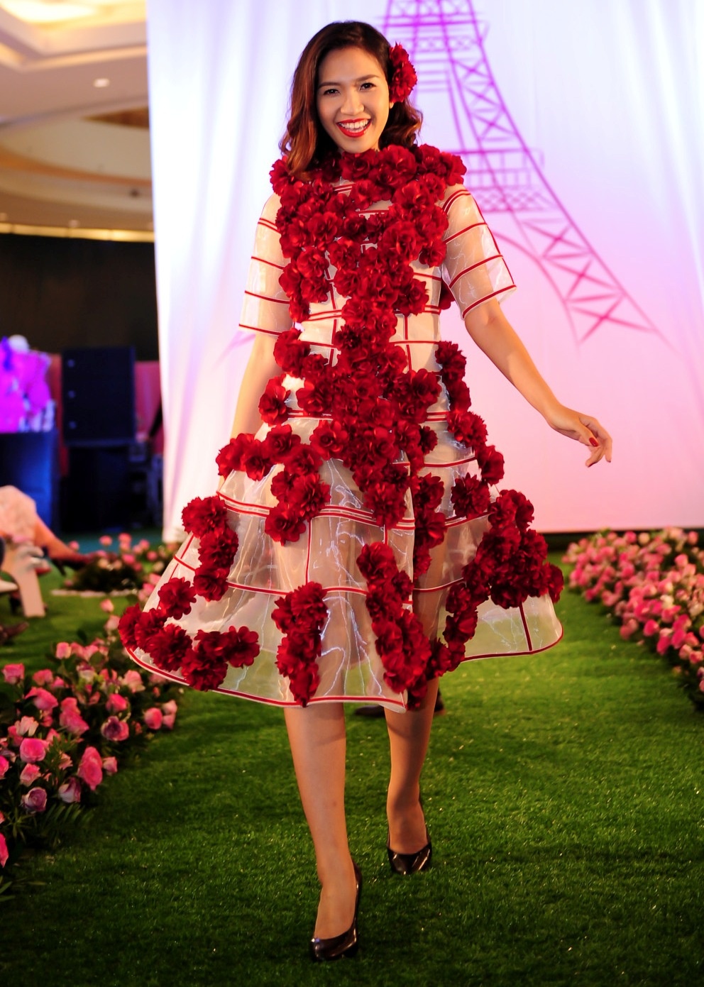 Hoa hậu ảnh Trúc Diễm thu hút mọi ánh nhìn nhờ thần thái rạng rỡ và hương thơm toả ra từ bộ váy hoa lộng lẫy. |