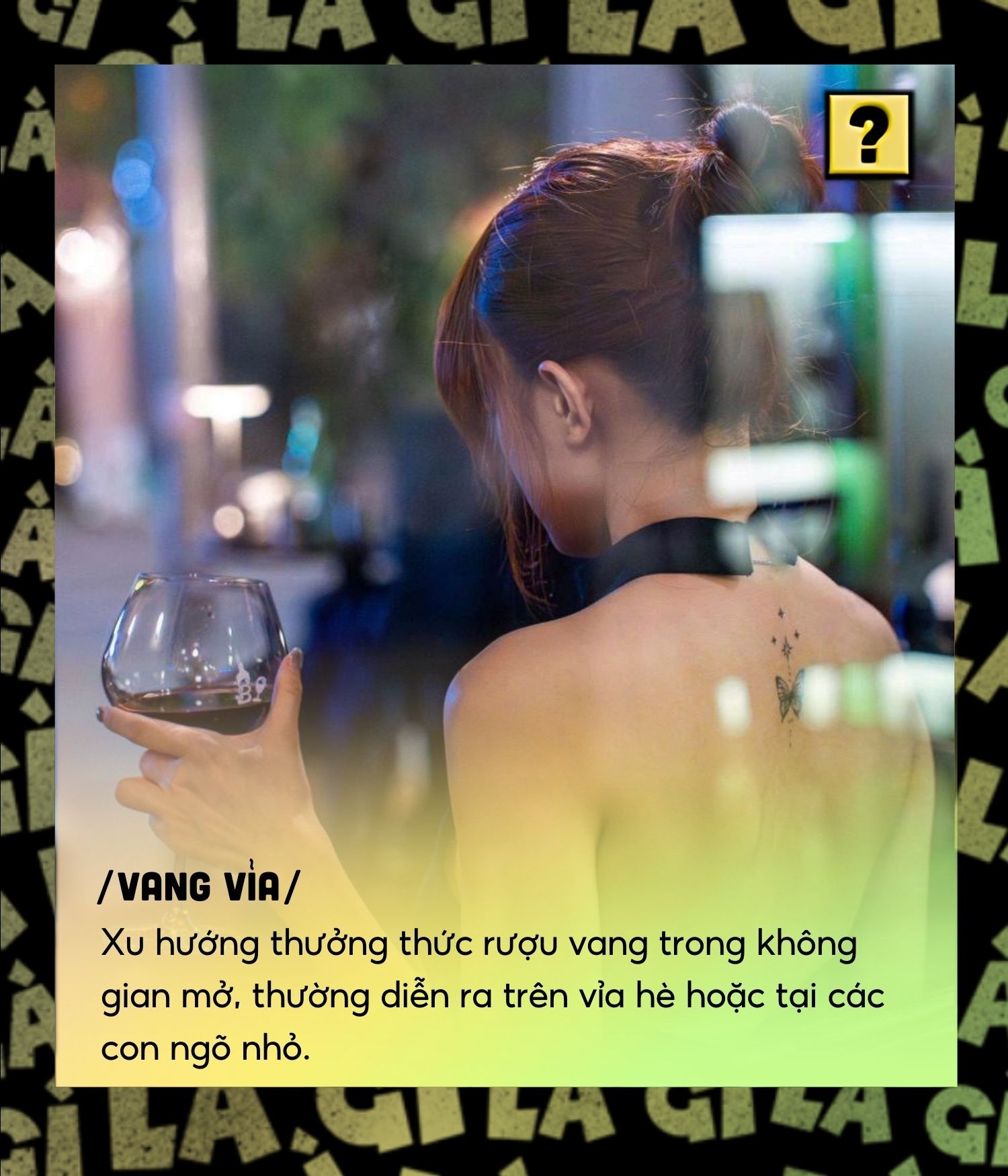 Cụm từ “vang vỉa” gần đây xuất hiện ngày càng nhiều trong các cuộc trò chuyện của giới trẻ, đặc biệt tại Hà Nội. Thuật ngữ này dùng để chỉ xu hướng thưởng thức rượu vang trong không gian mở, thường diễn ra trên vỉa hè hoặc tại các con ngõ nhỏ.