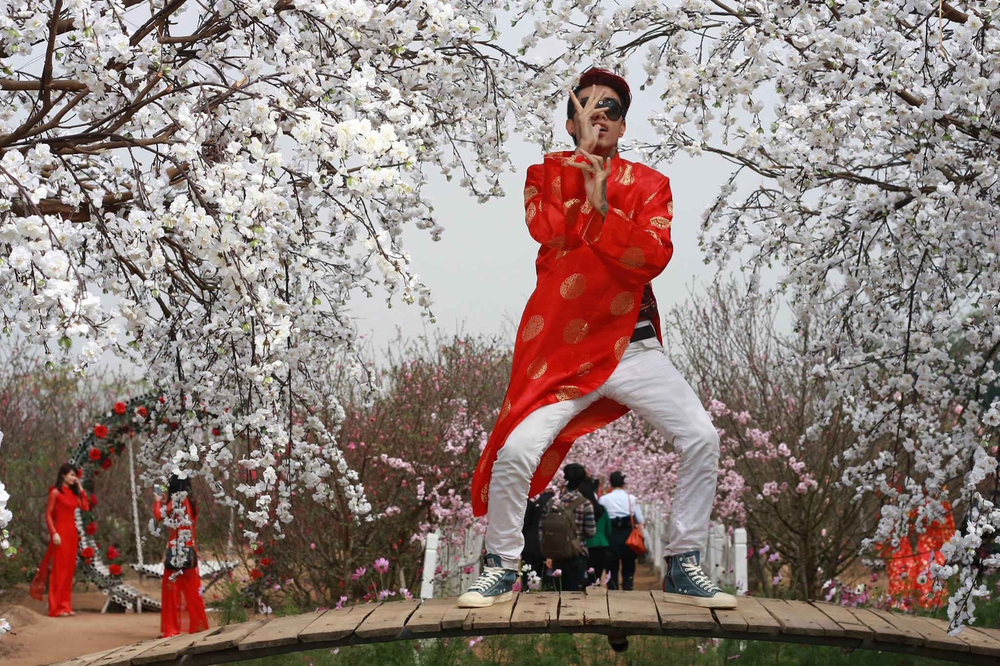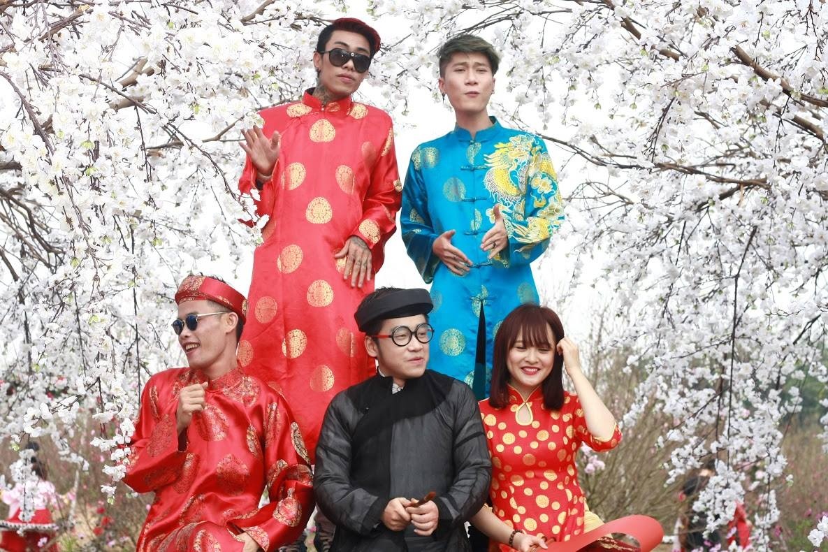 Nhóm đã chọn vườn đào Nhật Tân làm bối cảnh để quay clip.