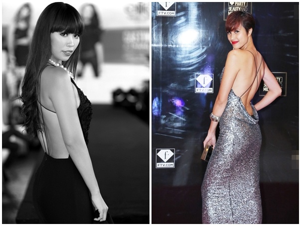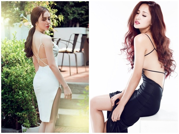 | Bích Phương Idol và Andrea mạnh dạn khoe lưng trần khi diện váy bó sát. Khoảng hở do dây mảnh tạo ra rất phù hợp với vóc dáng và thần thái người mặc. |