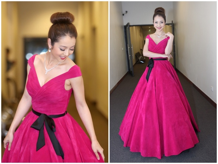 Tối 8/3, Jennifer Phạm đảm nhận vai trò MC tại show diễn Người Tình In Concert của Bằng Kiều. Trên sân khấu và trong hậu trường, bà mẹ hai con ăn mặc kín đáo và tế nhị. Cô diện chiếc đầm xòe duyên dáng của NTK Huy Trần. Tông màu tím hồng và chất liệu nhung giúp người đẹp trở nên sang trọng và quý phái khi đứng trên sân khấu.