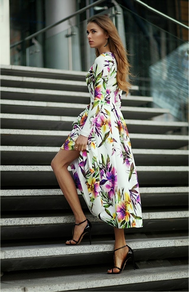 | Đầm maxi hoa rất phù hợp với các cô gái có cặp chân dài. |