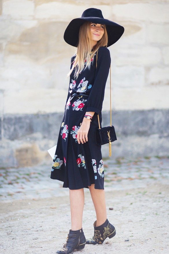 | Với các cô nàng cá tính thì cách kết hợp đầm hoa và mũ fedora sẽ rất hấp dẫn. |