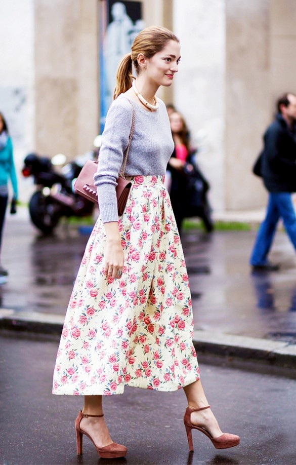 | Váy maxi hoa kết hợp cùng áo len đơn giản cho những ngày hơi se lạnh. |