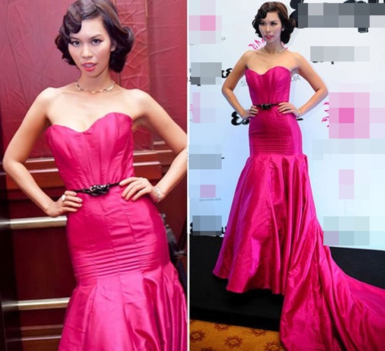 | Chất liệu và đường nét váy của Lâm Chi Khanh bị chê kém sang trọng. Mặt khác,cách trang điểm mặt trắng bệch hơn so với thân hình cũng là điều tối kỵ. |