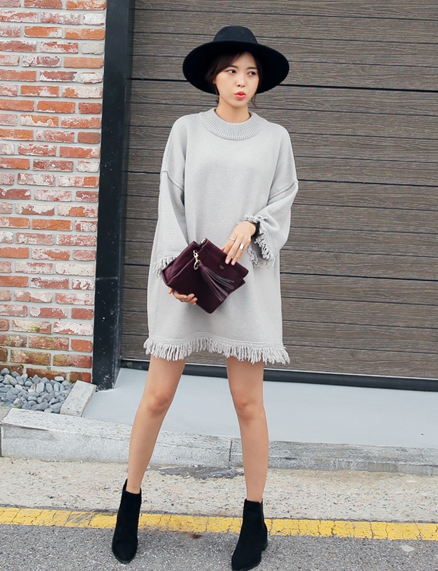 Biến tấu đẹp mắt với váy len tua rua có thể phù hợp cả tiệc tùng và dạo phố.
