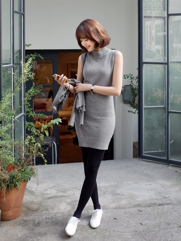 Bạn có thể kết hợp cùng tất chân hoặc quần jeans trẻ trung với cùng mẫu váy len.