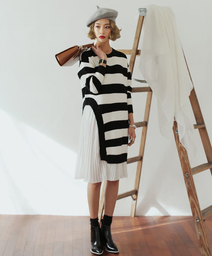 | Cách kết hợp váy len với tay áo trắng giúp tăng vẻ trẻ trung cho trang phục. |