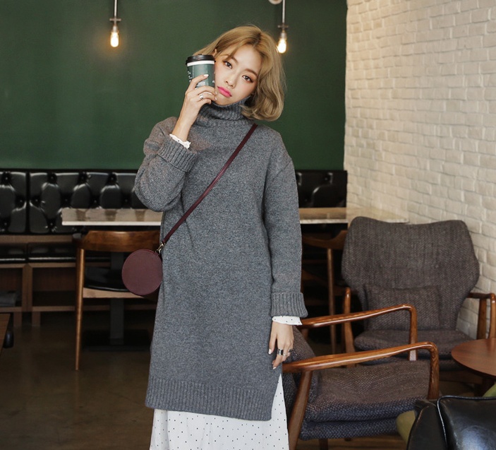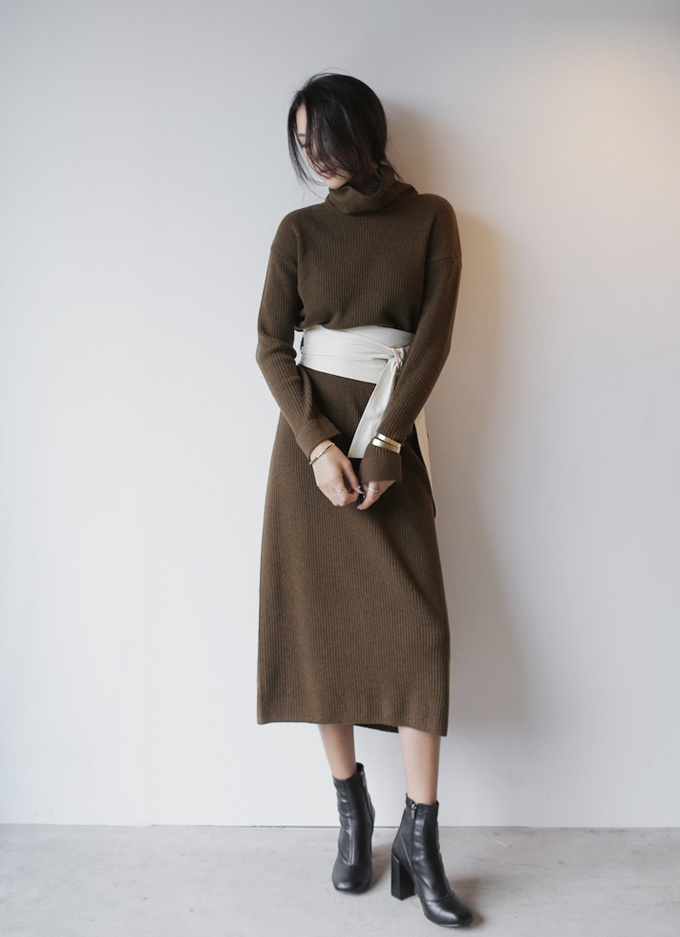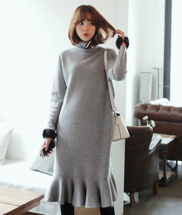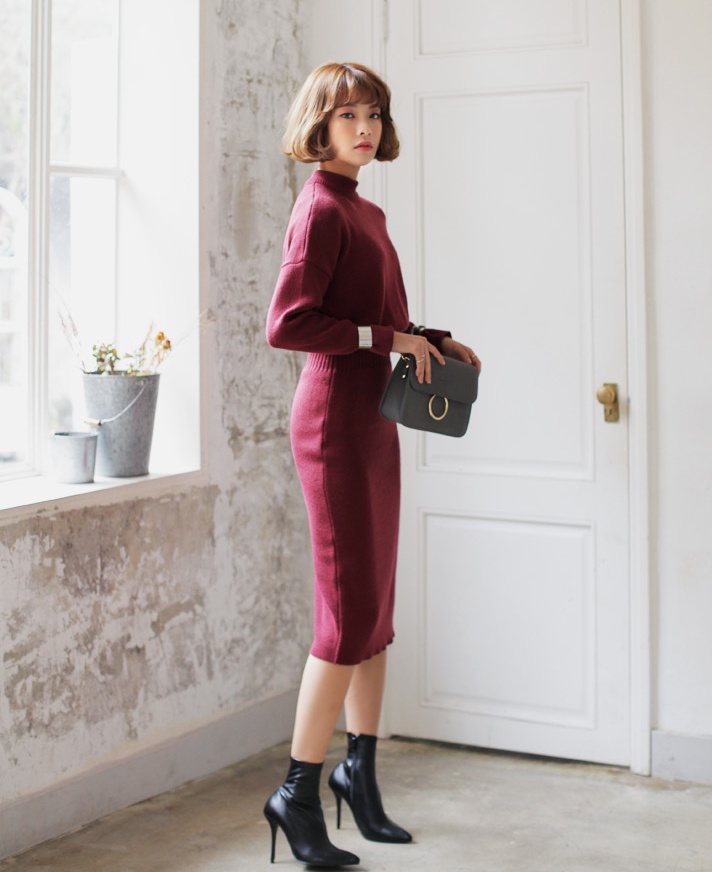 | Phái nữ văn phòng điệu đà cùng kiểu váy len cao cổ có tông màu trầm ấm. |