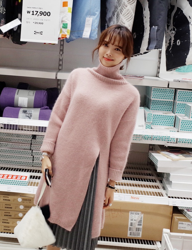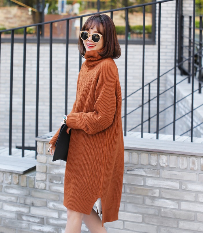 | Thời trang xuống phố ấm áp cùng váy len cao cổ có tông màu rất hút mắt. |