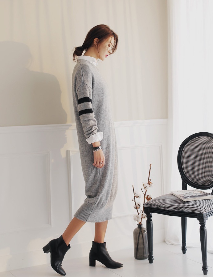 | Thời trang xuống phố ngày đông với slip-on và váy len dày dáng dài ấm áp. |