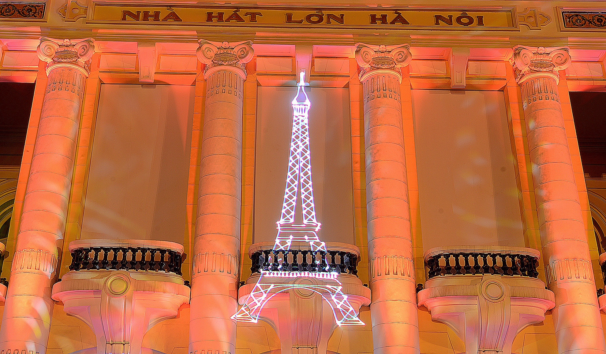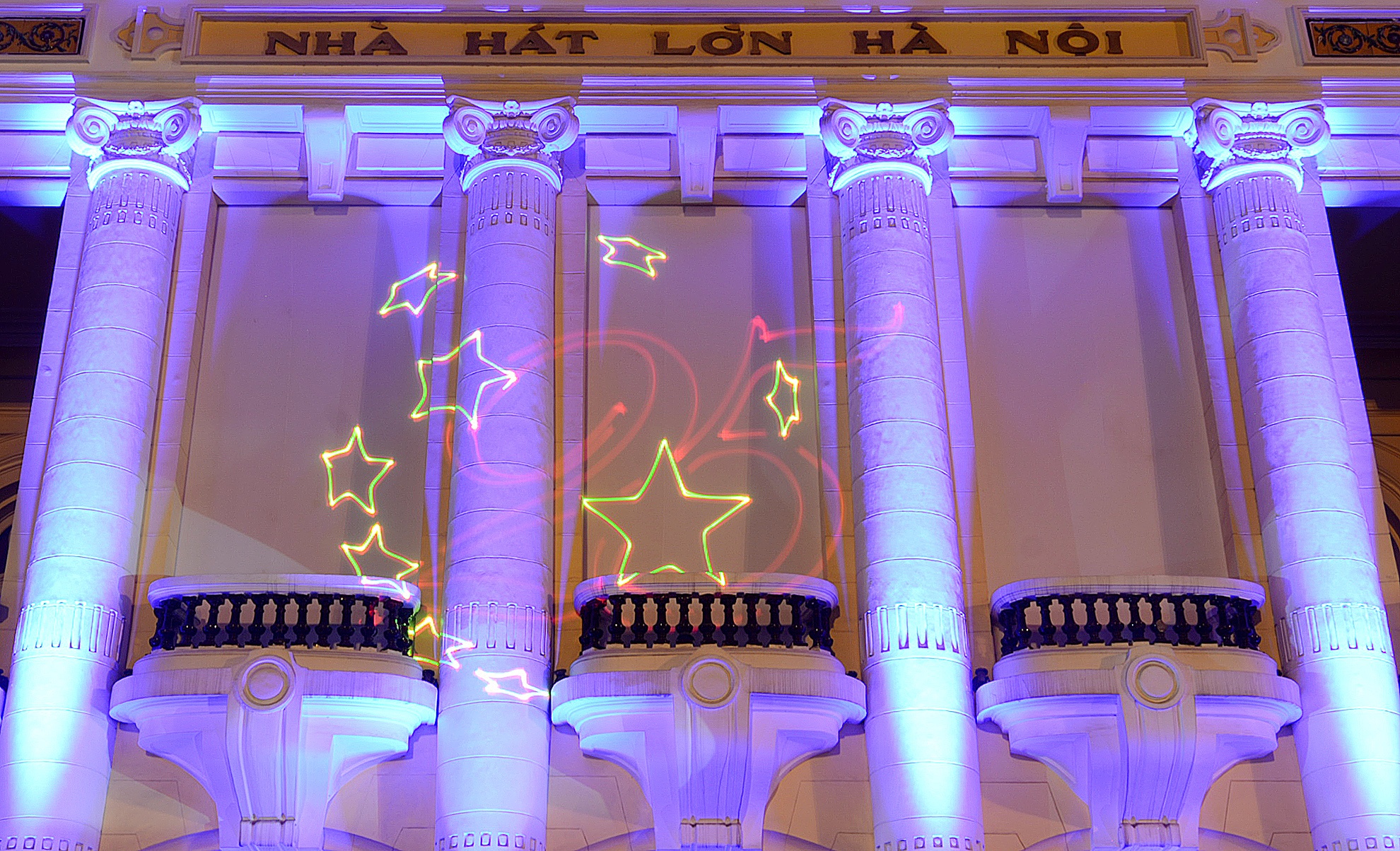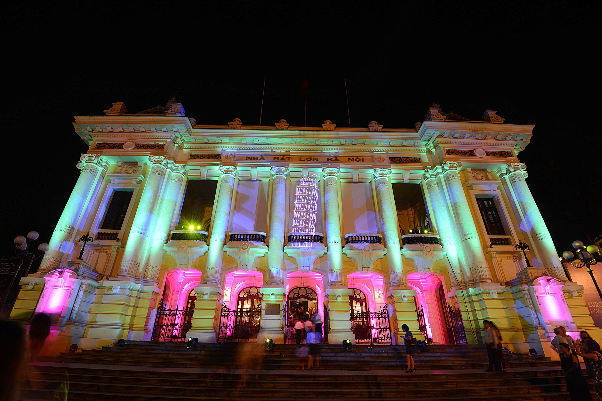 19h30 tối 8/5, buổi biểu diễn ánh sáng laser tại Nhà hát Lớn Hà Nội bắt đầu. Đây là chương trình nằm trong chuỗi sự kiện "Những ngày châu Âu 2015", hướng tới kỷ niệm Ngày châu Âu 9/5/1950 và kỷ niệm 25 năm thiết lập quan hệ ngoại giao Việt Nam - Liên minh Châu Âu (EU).