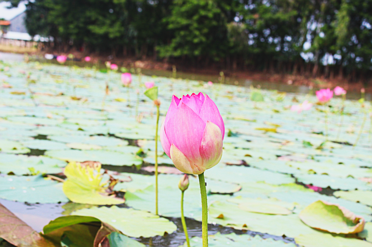 Trong hành trình lênh đên trên lòng búng, ngoài nhà bè, lồng nuôi cá, cảnh sắc thiên nhiên, những cụm hoa điên điển vàng rực. Bạn sẽ phát hiện ở một góc khuất của búng, những hoa sen hồng tươi đang khoe sắc. Cũng gần đó là khoảng trời vàng rực của hoa nhút. Màu vàng của loại hoa quyện trong màu đỏ của phù sa, xanh của hàng cây ven búng khiến bạn không thể không nghĩ tới câu "Tôi đã thấy hoa vàng trên cỏ xanh".
