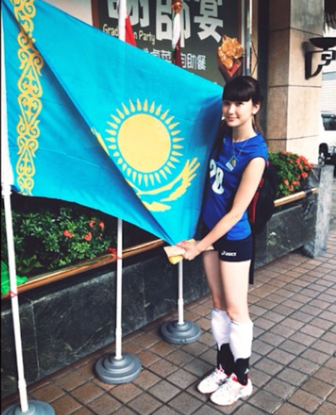 | Chủ nhân của những bức hình gây bão này là Altynbekova Sabina (sinh năm 1996). Cô hiện là vận động viên của đội tuyển bóng chuyền quốc gia Kazakhstan. |