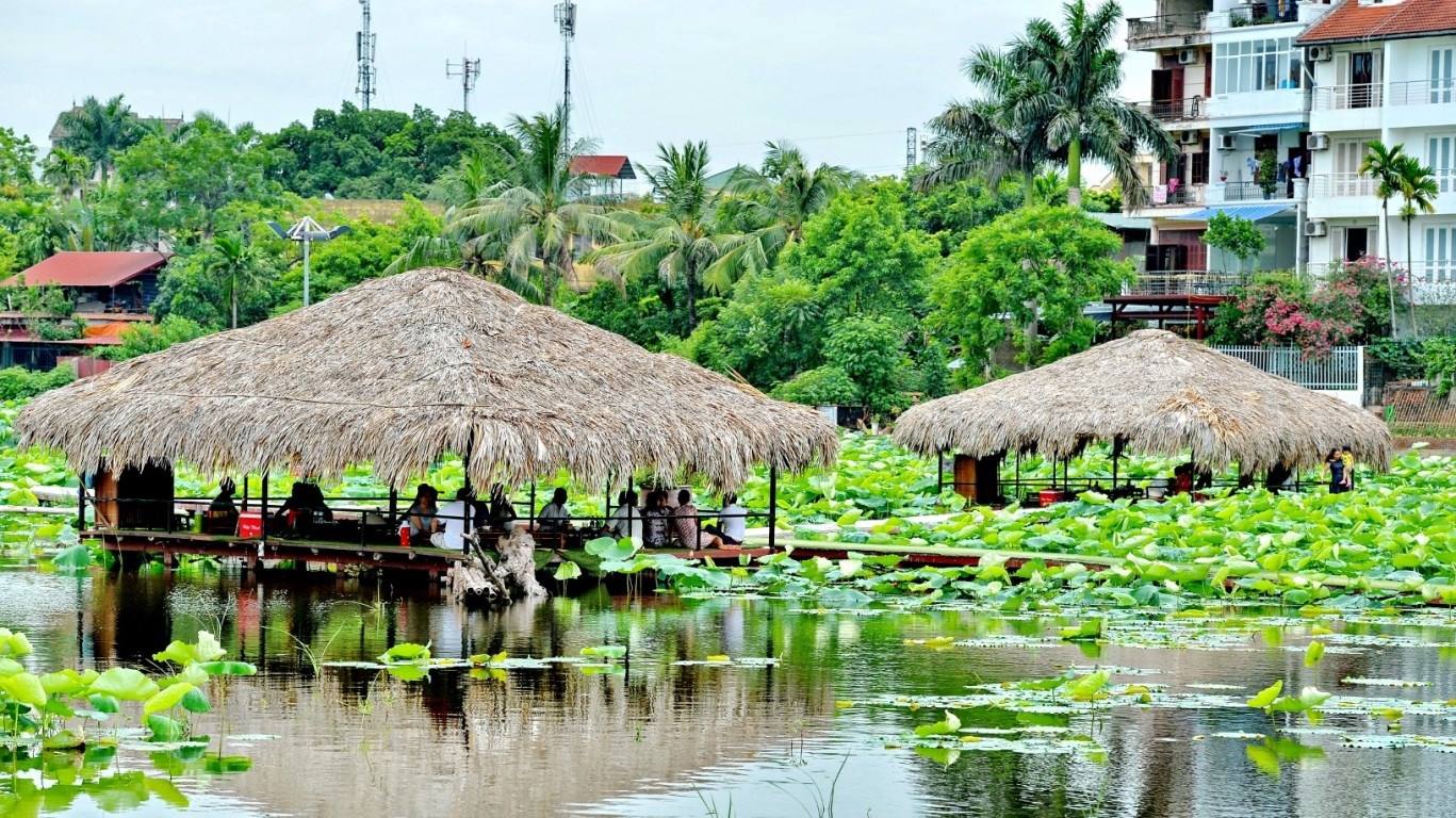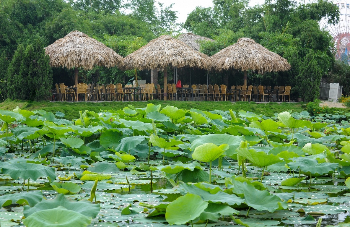 | Tại đây còn có nhà hàng với không gian rộng lớn với nhiều món ẩm thực từ sen đặc sắc: trà ướp hoa sen, gà hấp lá sen, nộm ngó sen, xôi sen và các món đặc sản nuôi tại hồ Tây như cá, tôm, ốc… Nhà hàng còn phục vụ các sự kiện, hội nghị, họp lớp, tổ chức sinh nhật… có các phòng VIP dành cho đoàn 20-30 người, phòng lớn dành cho đoàn khách họp lớp 90-100 người, làm sự kiện khoảng 200-300 người. |
