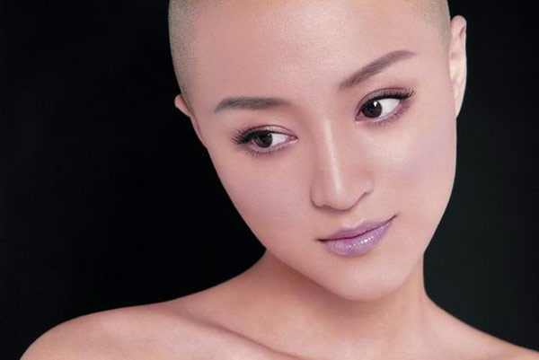 | Nữ diễn viên Phương Viên đã cạo đầu khi đóng bộ phim điện ảnh Giữa sự sống và cái chết (2006). |