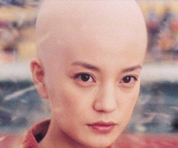 | Tạo hình đầu trọc của Triệu Vy trong bộ phim điện ảnh Đội bóng Thiếu Lâm (2001). |
