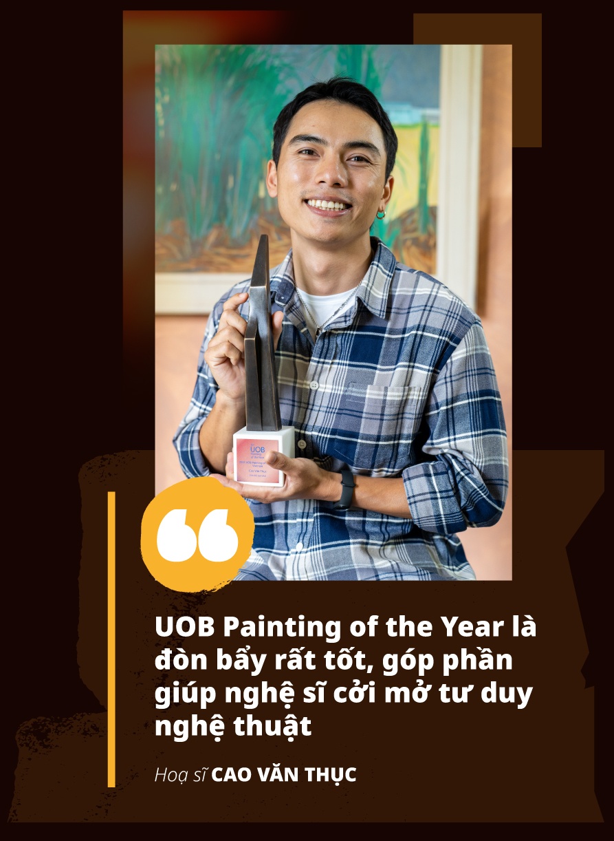 - Tôi nghĩ UOB Painting of the Year là cơ hội rất lớn cho các nghệ sĩ Việt Nam. Như tôi, một nghệ sĩ trẻ, đó là đòn bẩy rất tốt. Chặng đường nghệ thuật của chúng tôi còn rất dài. Điểm khởi đầu được tiếp cận với nghệ thuật quốc tế, cũng như nhận được sự hỗ trợ như vậy giúp ích rất nhiều cho góc nhìn về nghệ thuật, góp phần khiến tư duy cởi mở hơn. Nghệ thuật là phạm trù rộng lớn với nhiều ngóc ngách và cách tiếp cận khác nhau. Cách thức biểu đạt, tiêu chuẩn về cái đẹp ở mỗi quốc gia, vùng miền một khác.