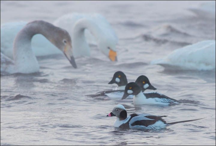 | Hồ này không chỉ là nhà của những con thiên trong mùa đông rét mướt mà còn là nơi cư trú của những loài chim khác và động vật hoang dã trong mùa săn bắn. |