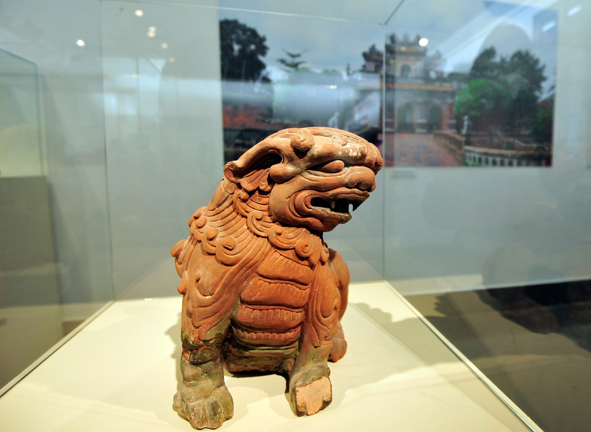 | Gần 60 hiện vật, từ thời Lý, Trần, Hậu Lê đến Nguyễn, được tạo tác bằng các chất liệu đá, gốm, sành, gỗ, đồng... trưng bày theo chuyên đề "Hình tượng sư tử và nghê trong nghệ thuật điêu khắc cổ Việt Nam". |