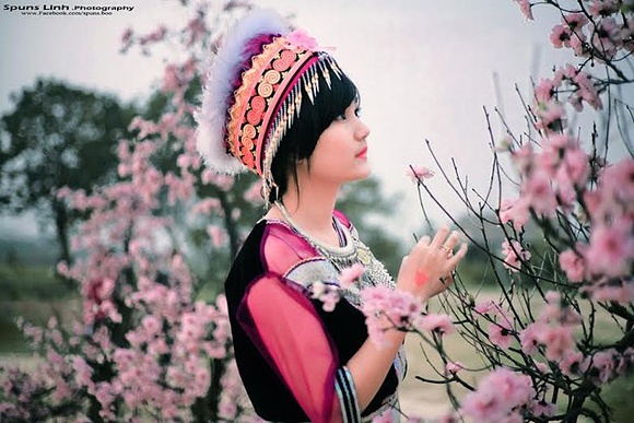 | Trong bộ ảnh mới nhất, nữ sinh này mặc trang phục truyền thống của dân tộc đi du xuân trong tiết trời se lạnh và phấp phới sắc đào thắm. |