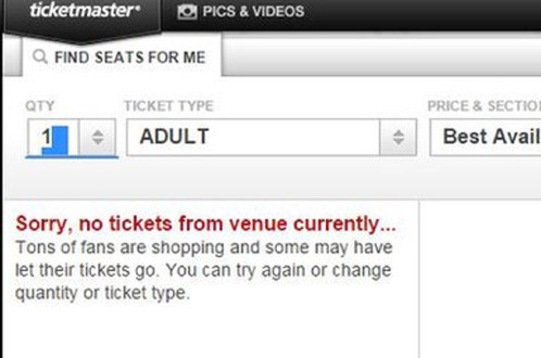 | Trang mạng bán vé Ticketmaster đăng tin xin lỗi người hâm mộ vì hết vé. Ảnh: BBC. |
