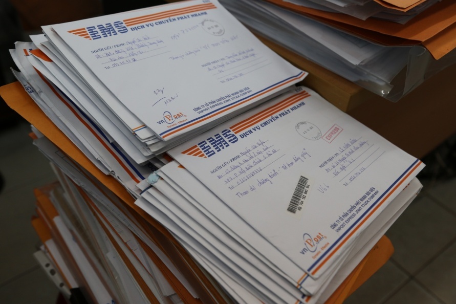 | Những chồng hồ sơ được gửi đến chương trình chất chứa niềm tin và hy vọng của các bạn trẻ vào cơ hội được đoàn tụ ngày Tết bên gia đình. |