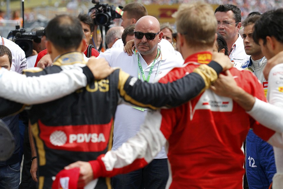 | Trước khi chặng đua diễn ra, các tay đua cùng nhau dành một phút mặc niệm cho tay đua xấu số Jules Bianchi, người mới qua đời hôm 17/7 sau thời gian dài sống thực vật do vụ tai nạn kinh hoàng trên đường đua Suzuka (Nhật Bản) hồi tháng 10 năm ngoái. |