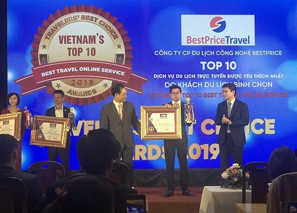 | Ông Bùi Thanh Tú - CMO của BestPrice đại diện nhận giải “Top 10 dịch vụ du lịch trực tuyến được yêu thích nhất”. |