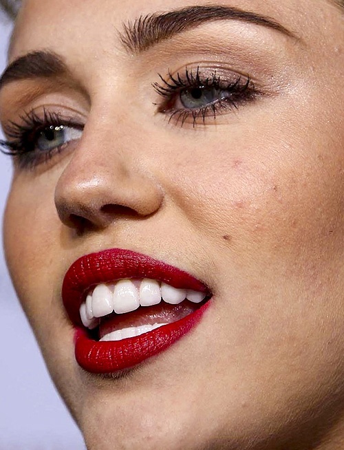 | Miley Cyrus với làn da sần sùi do mụn trứng cá. |