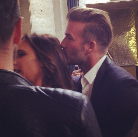 | Hình ảnh tình cảm của cặp đôi nổi tiếng phía sau hậu trường của lễ ra mắt BST mới của Vic. |