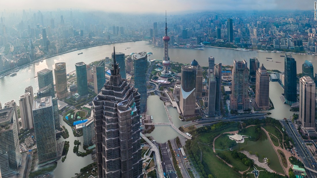 | Thành phố Thượng Hải, Trung Quốc sẽ bắt đầu bị nước xâm lấn khi nhiệt độ trái đất tăng thêm 2 độ C. Phạm vi ngập nước sẽ gia tăng mạnh khi nhiệt độ tăng tới 4 độ C. Những hình ảnh này được Trung tâm Khí tượng công bố nhằm cảnh báo tác động của sự nóng lên toàn cầu. |