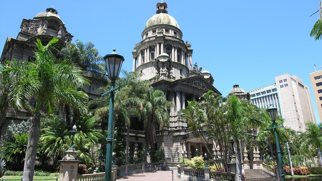 | Thành phố Durban ở miền đông Nam Phi dường như không bị tác động khi nhiệt độ tăng lên 2 độ C. Tuy nhiên, một phần của đô thị này sẽ bị nhấn chìm khi nhiệt độ lên tới 4 độ. |