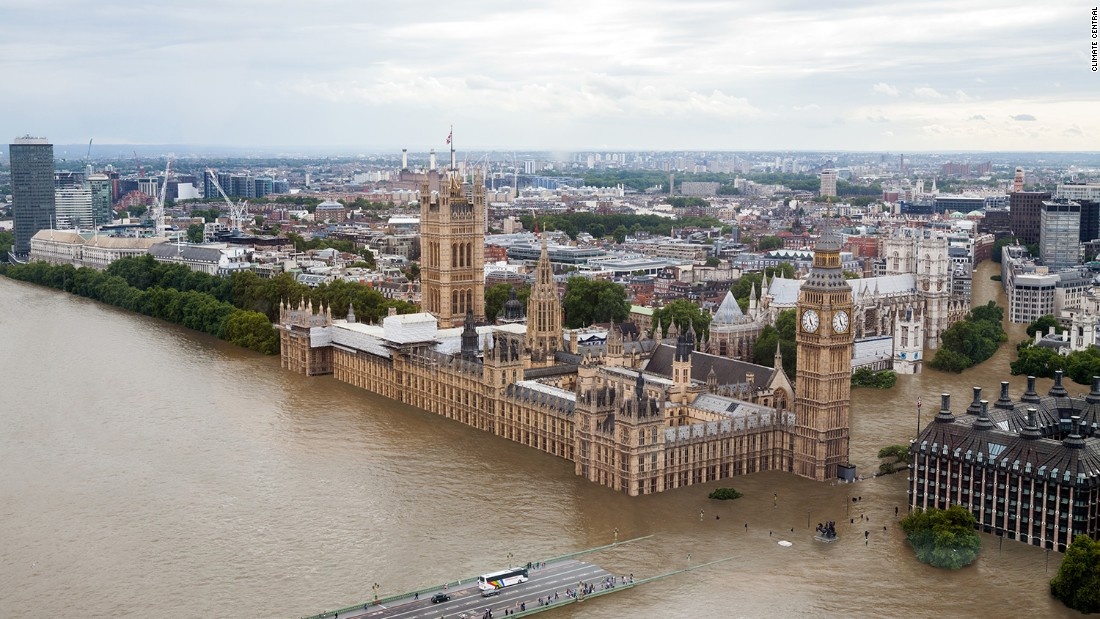 | Thủ đô nước Anh cũng rơi vào cảnh bị nhấn chìm do nước biển dâng. |