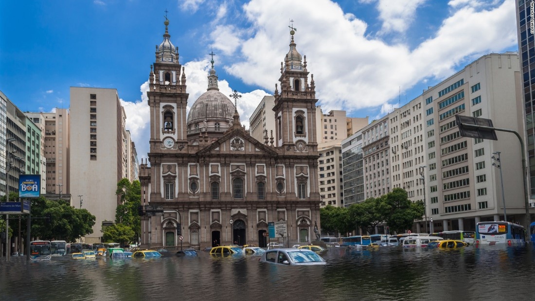 | Thành phố Rio de Janeiro, Brazil khô ráo khi nhiệt độ trái đất tăng thêm 2 độ nhưng bị nhấn chìm tới 1 m khi tăng 4 độ. |