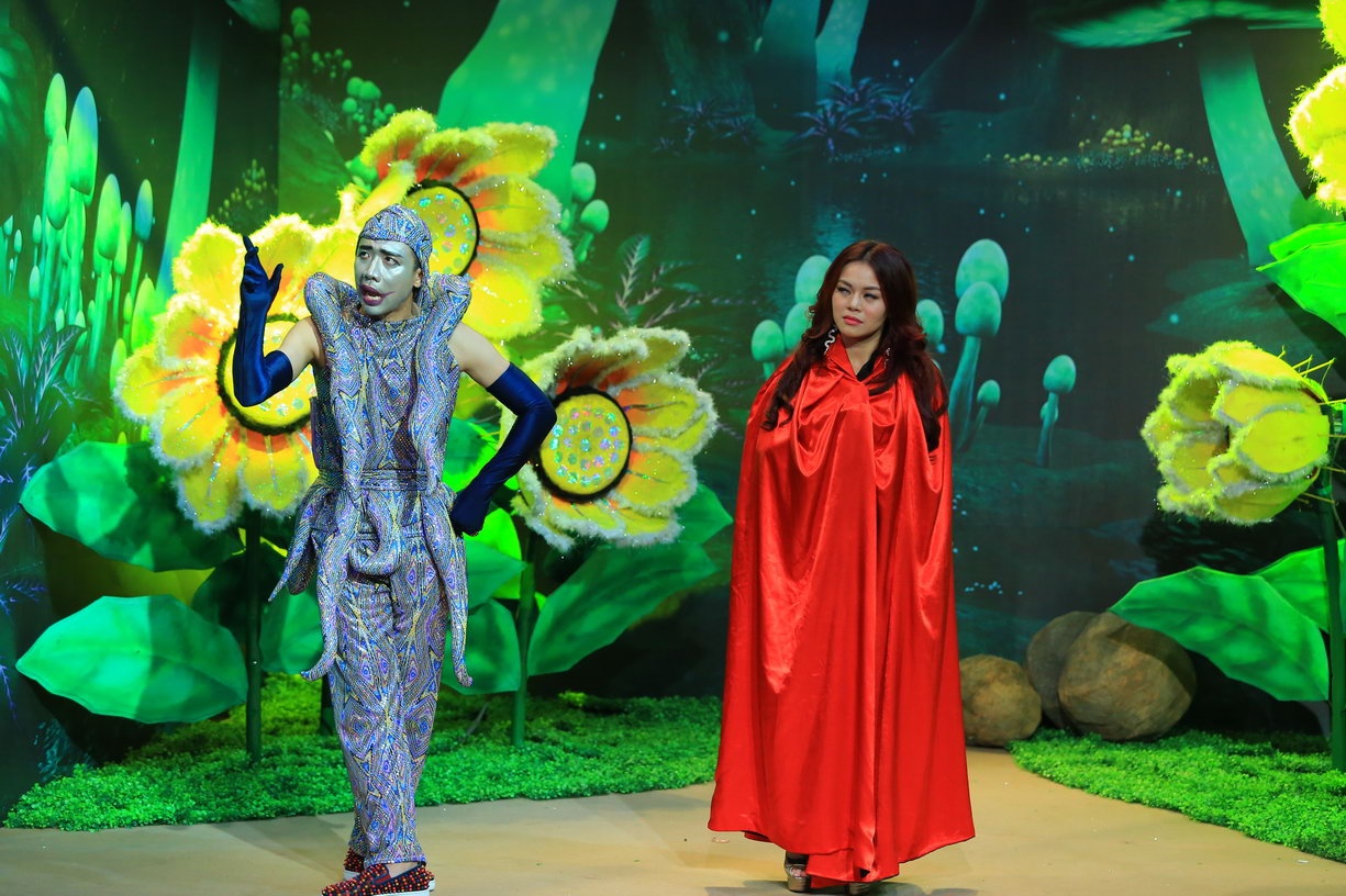 Hải Yến đối đầu với trưởng phòng Trấn Thành. Hải Yến hoá thân thành nàng Eva ở vườn địa đàng, trong khi Trấn Thành nhập vai một sinh vật lạ ở hành tinh khác được mọi người gọi là Đại vương. Trấn Thành liên tục bắt bí Hải Yến bằng những câu hỏi khó như: “Vì sao có một trái bóng và nhiều người lại tranh nhau đá”, “Ăn gì cho mềm lòng” hay “Phần nào trên cơn thể nhạy cảm nhất” khiến cô liên tục bị khó xử trên sân khấu.