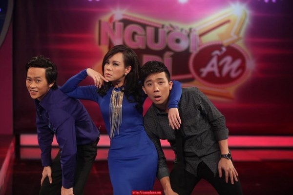 | Bộ 3 Hoài Linh - Việt Hương - Trấn Thành trong game show ăn khách Người bí ẩn. |